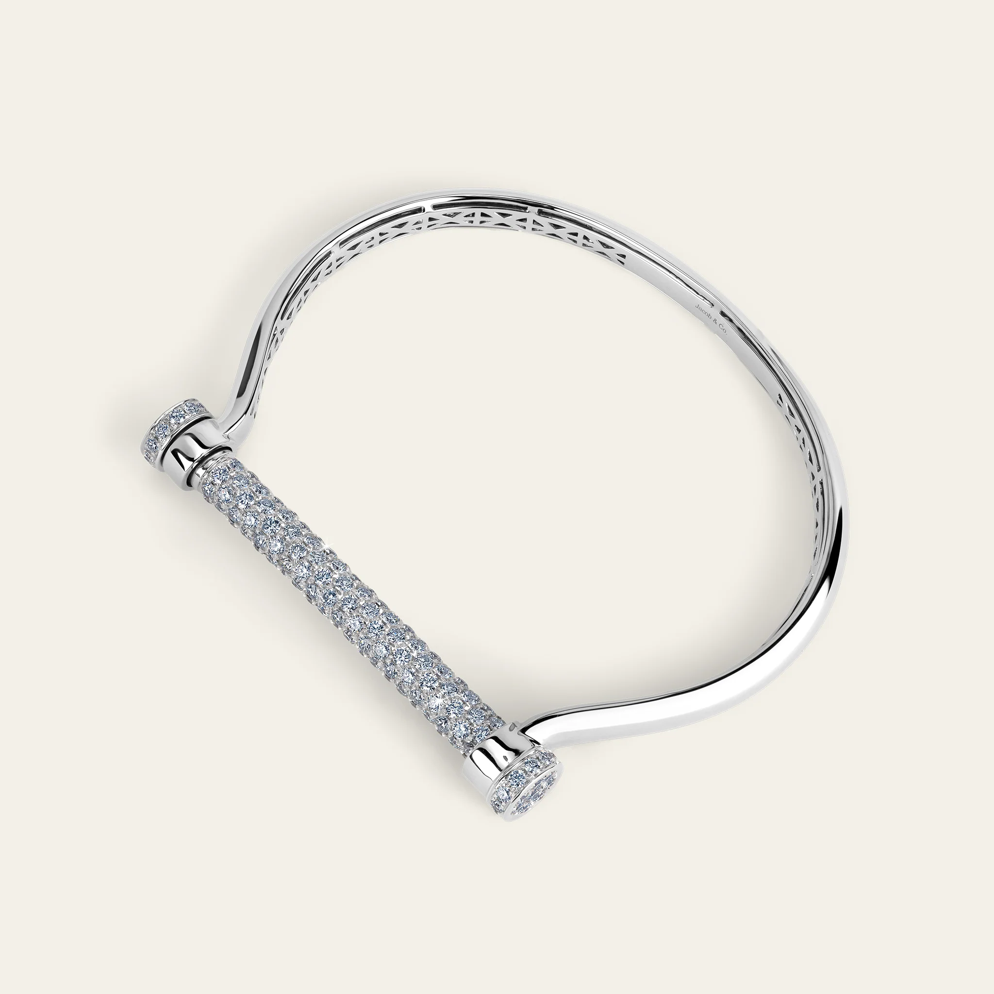 18Kホワイトゴールドで手作りされ、高品質のラウンドブリリアントカットダイヤモンドがセットされています