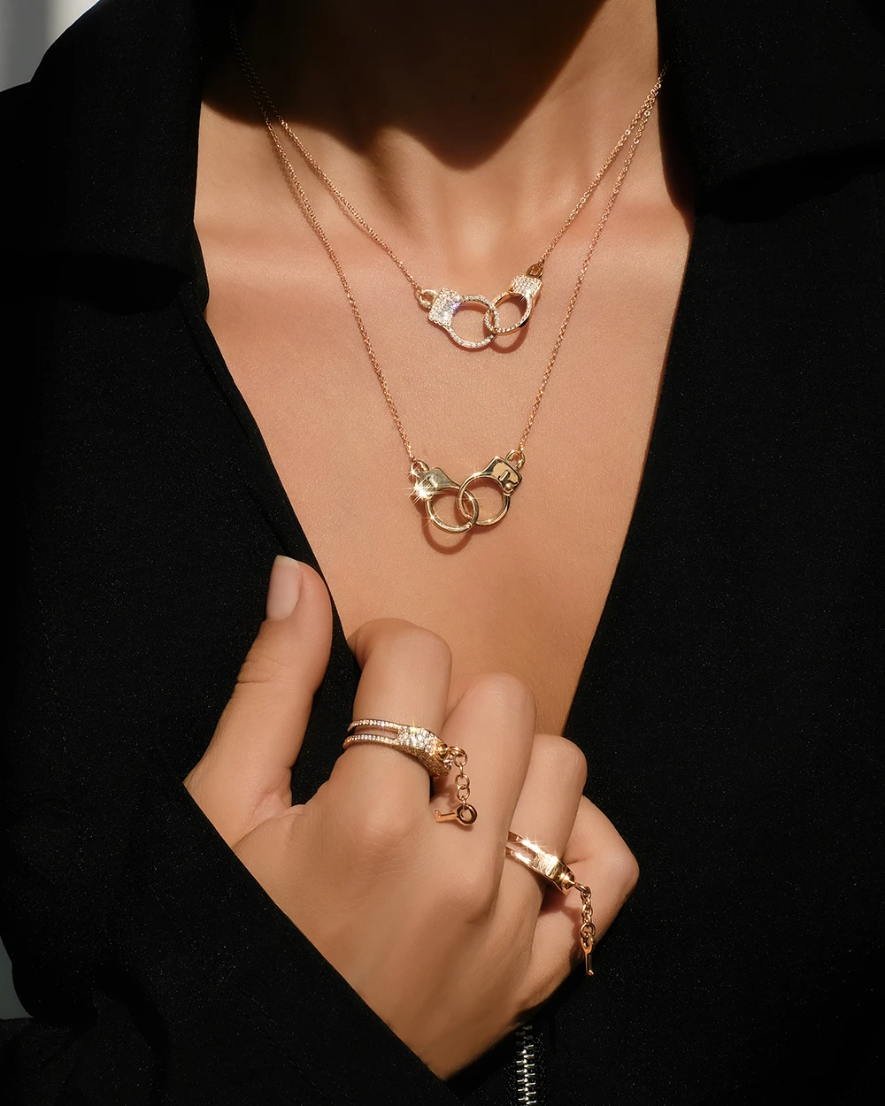 伝統的な永遠の愛のシンボルでは物足りなくなったとき、このハンドカフをテーマにしたジュエリーコレクションは、大切な人に気持ちを伝えるユニークな方法です。