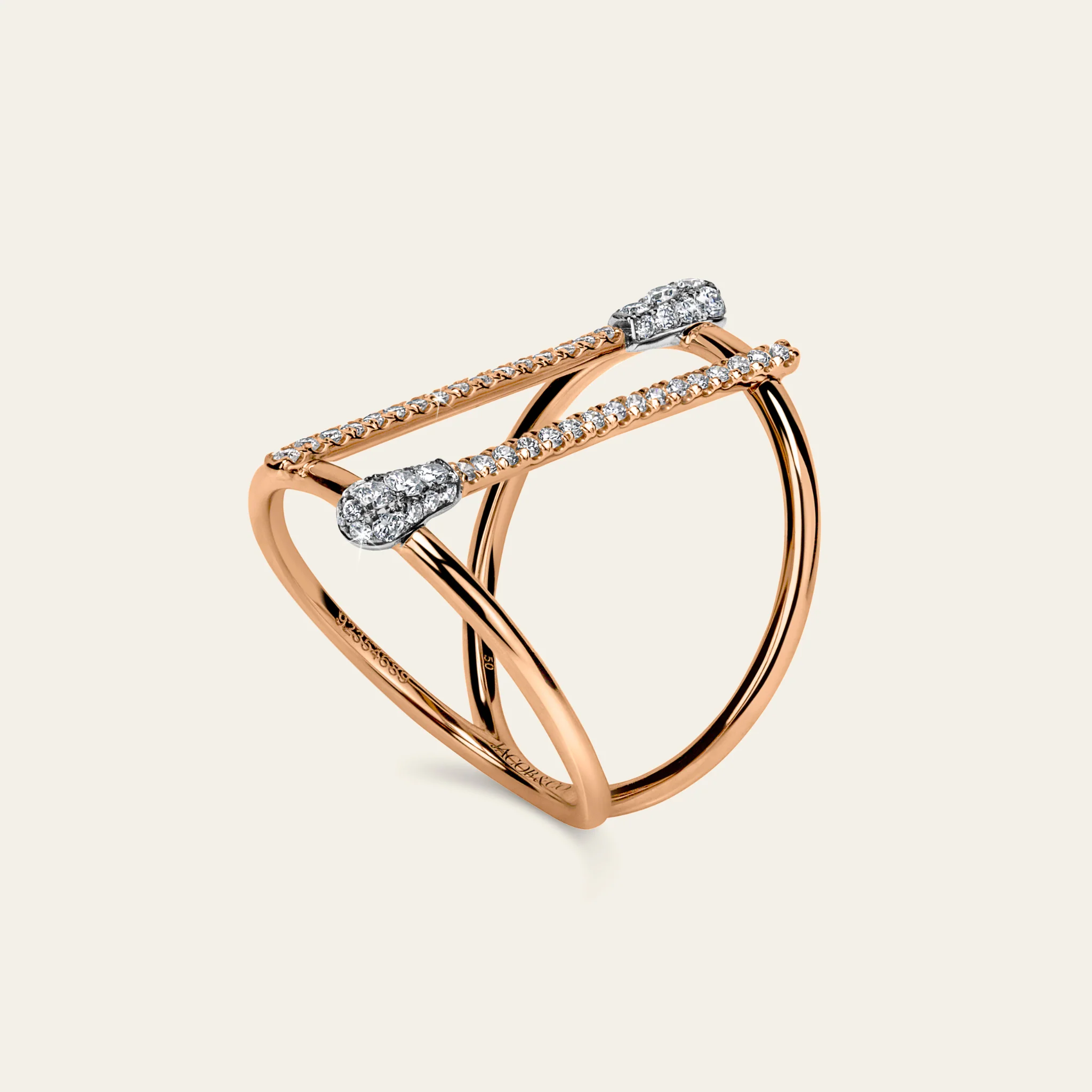 手作業による18Kローズゴールド製、マッチスティックとヘッドにパヴェセッティングされたホワイトダイヤモンド