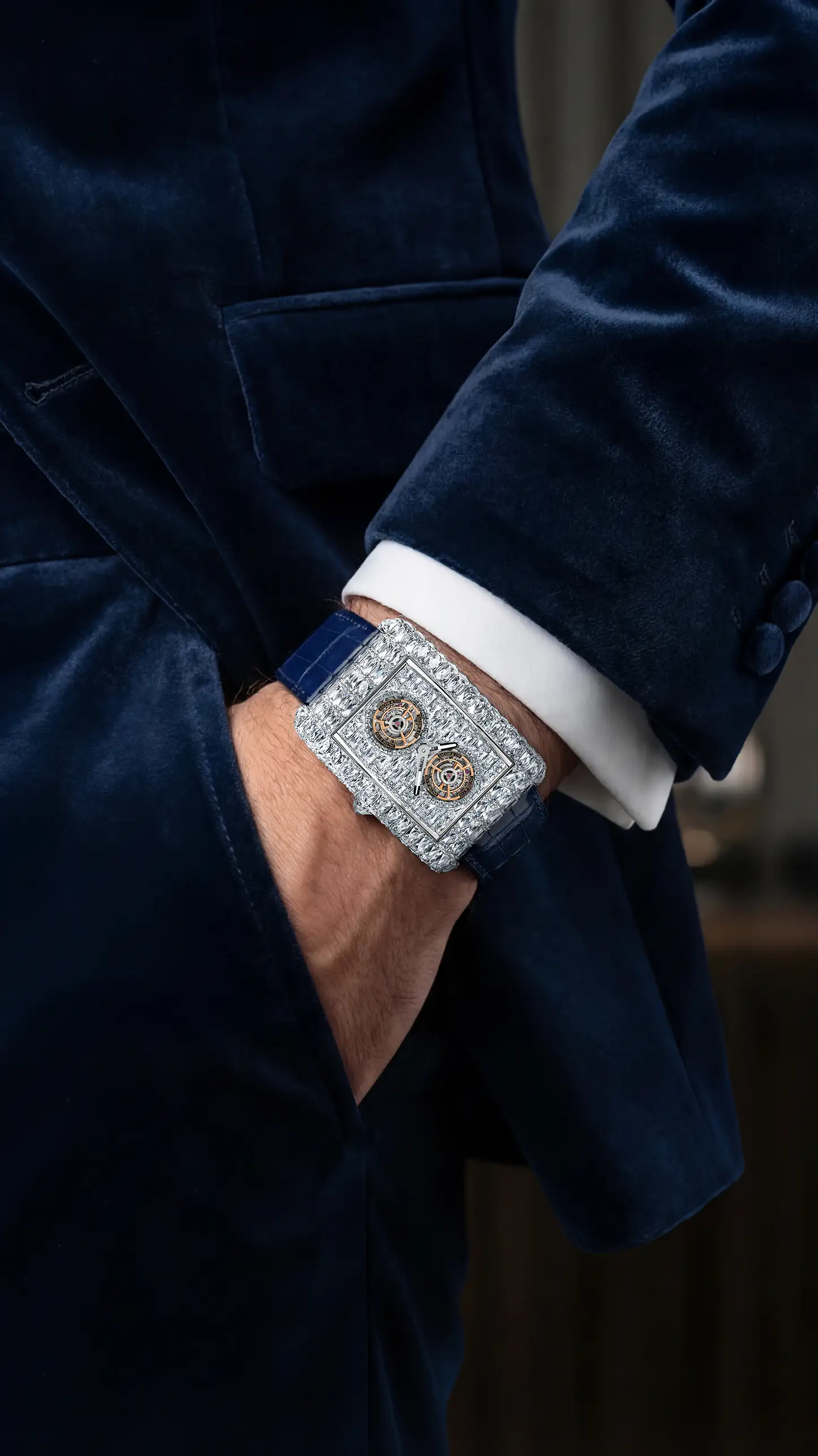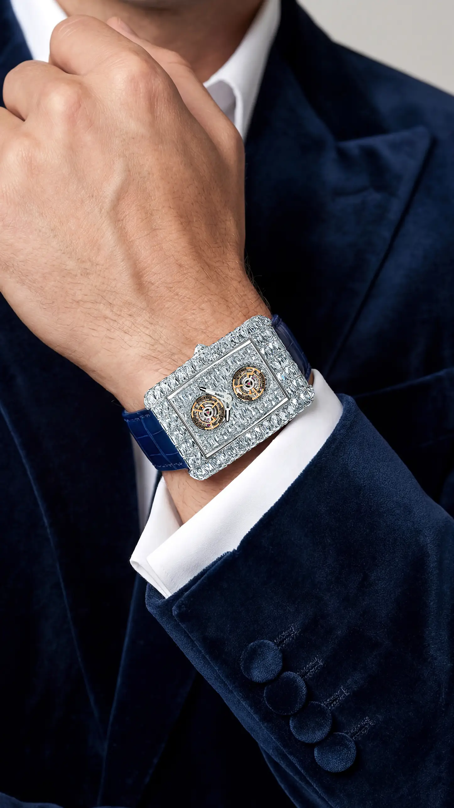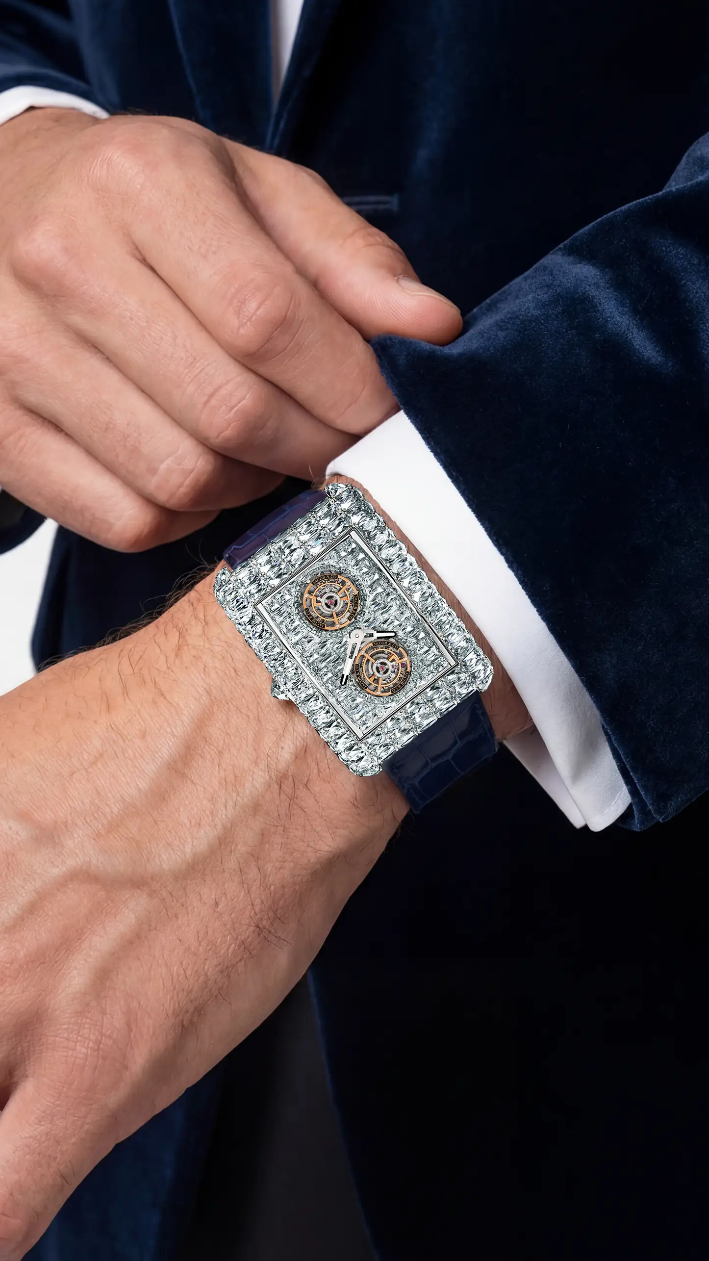 ジェイコブ&コー創業当初より、彼の中には「ダイヤモンドと時計製造、その双方が頂点に達する作品を創りたい」という構想がありました。そして2016年、その想いは結実します。極めて大粒のダイヤモンドを全面にセッティングし、スケルトン構造とトゥールビヨンを備えた一点物のタイムピース「ビリオネア」が誕生しました。その価格、使用されるダイヤモンドの規模、そしてデザインは、いずれも前例のないものであり、時計業界に衝撃を与えたこのモデルは、その後複数のバリエーションへと発展していきます。
