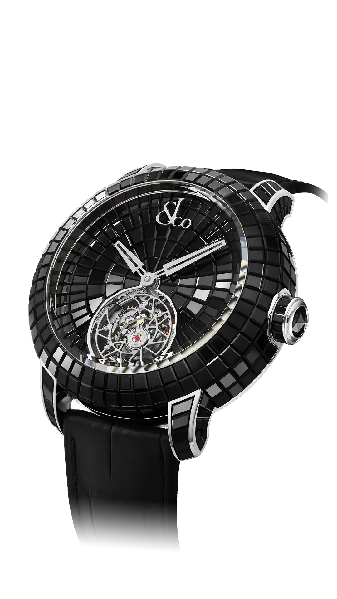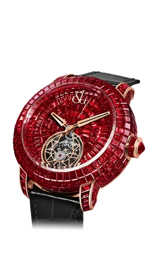 クリエイティブなコンセプトからデザインのインスピレーションを受け、鉛筆の最初の一筆から何百回と繰り返し、比類のないタイムピースへ命が吹き込まれます。キャビア トゥールビヨンは、開けたてのキャビア缶のような豪華で引き締まった外観を、424個のバゲットカットジェムで再現しています。