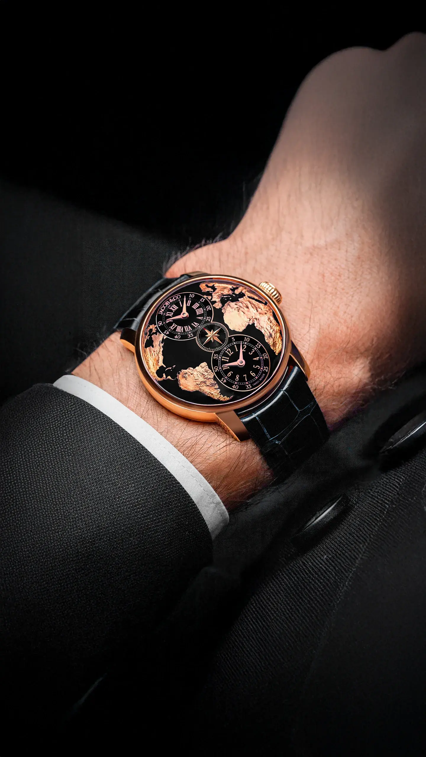 ザ ワールド イズ ユアーズは、世界とその見え方にインスパイアされており、そのデザインは地球の形を模しています。ケースは丸みを帯び、文字盤は豊かなカーブを描き、サファイアクリスタルはさらに広いカーブを描いています。ザ ワールド イズ ユアーズ デュアルタイムゾーンは、時計が3次元の宇宙を表現しています。